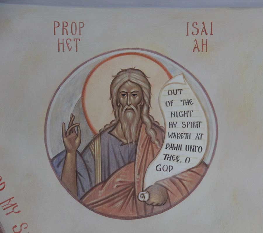 The eight images at the top of the east wall show the Old Testament prophets whose words are used as the beginning canticle for each ode of a Canon.