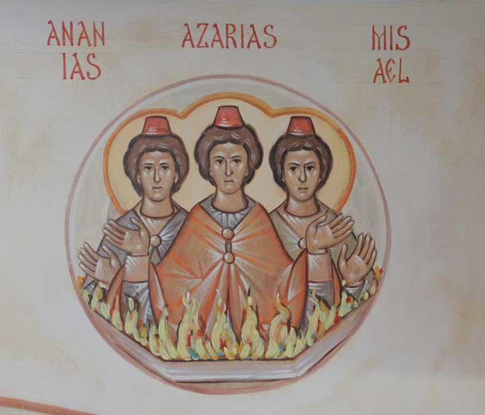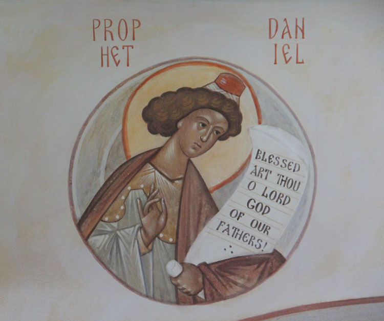 The eight images at the top of the east wall show the Old Testament prophets whose words are used as the beginning canticle for each ode of a Canon.